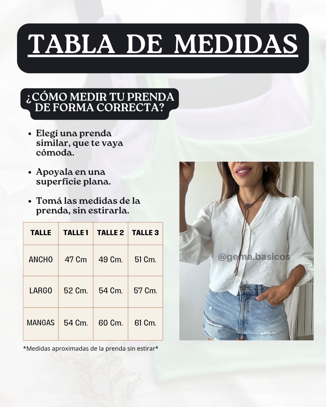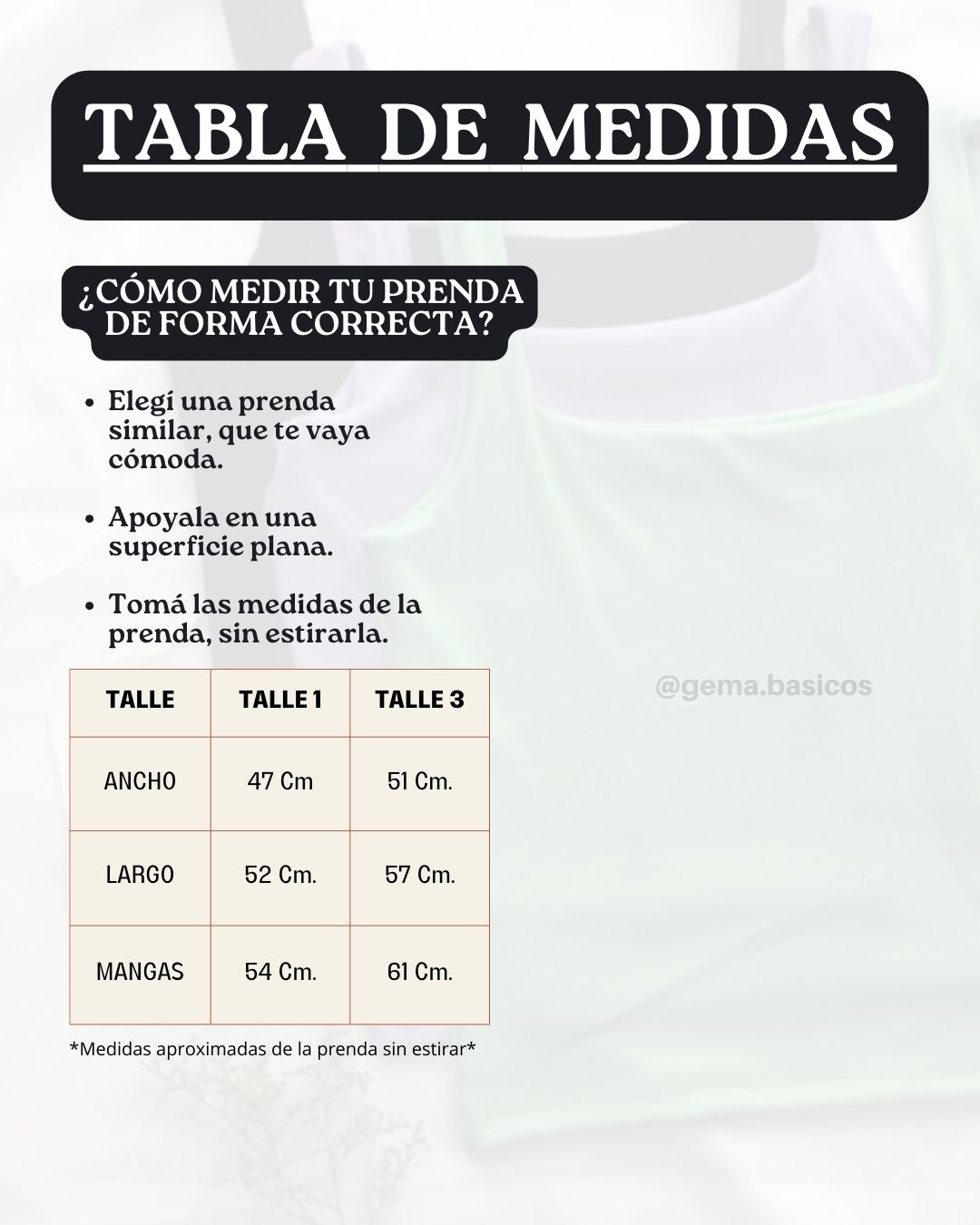 💟 Este modelo está disponible en Talle 1 (Abarca S/M) y Talle 3 (Abarca L/XL), -Este detalle es sólo orientativo, SIEMPRE compará una prenda tuya con las medidas de la tabla para asegurarte que es la prenda que estas buscando-