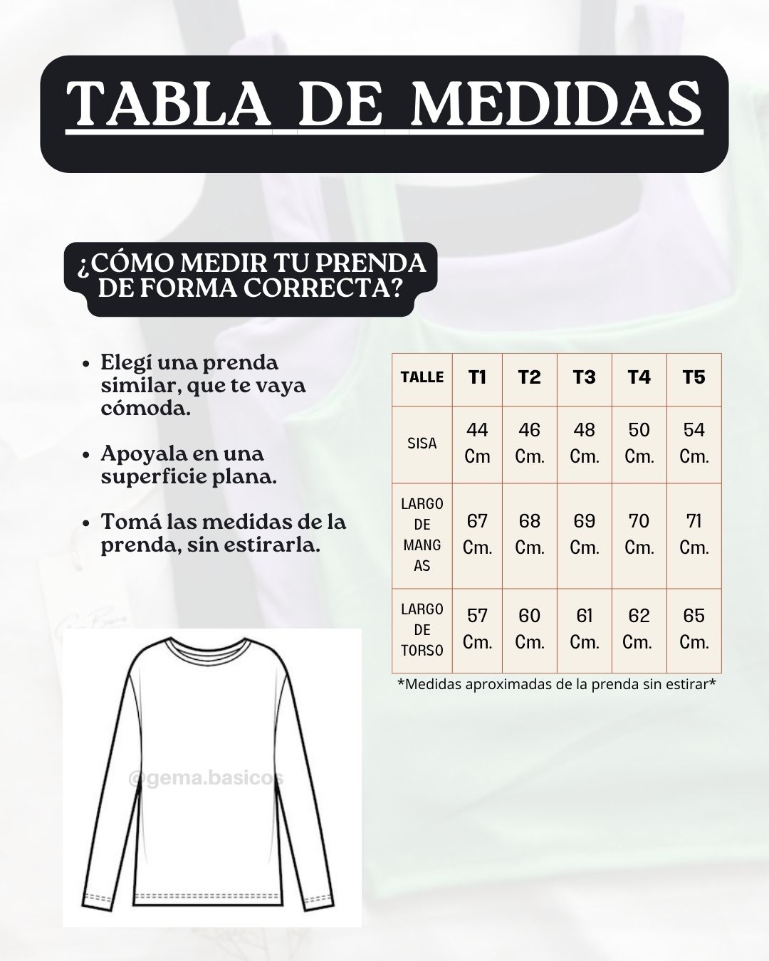 💟Este modelo está disponible en Talle 1, Talle 2, Talle 3, Talle 4 y Talle 5 -Este detalle es sólo orientativo, SIEMPRE compará una prenda tuya con las medidas de la tabla para asegurarte que es la prenda que estas buscando-